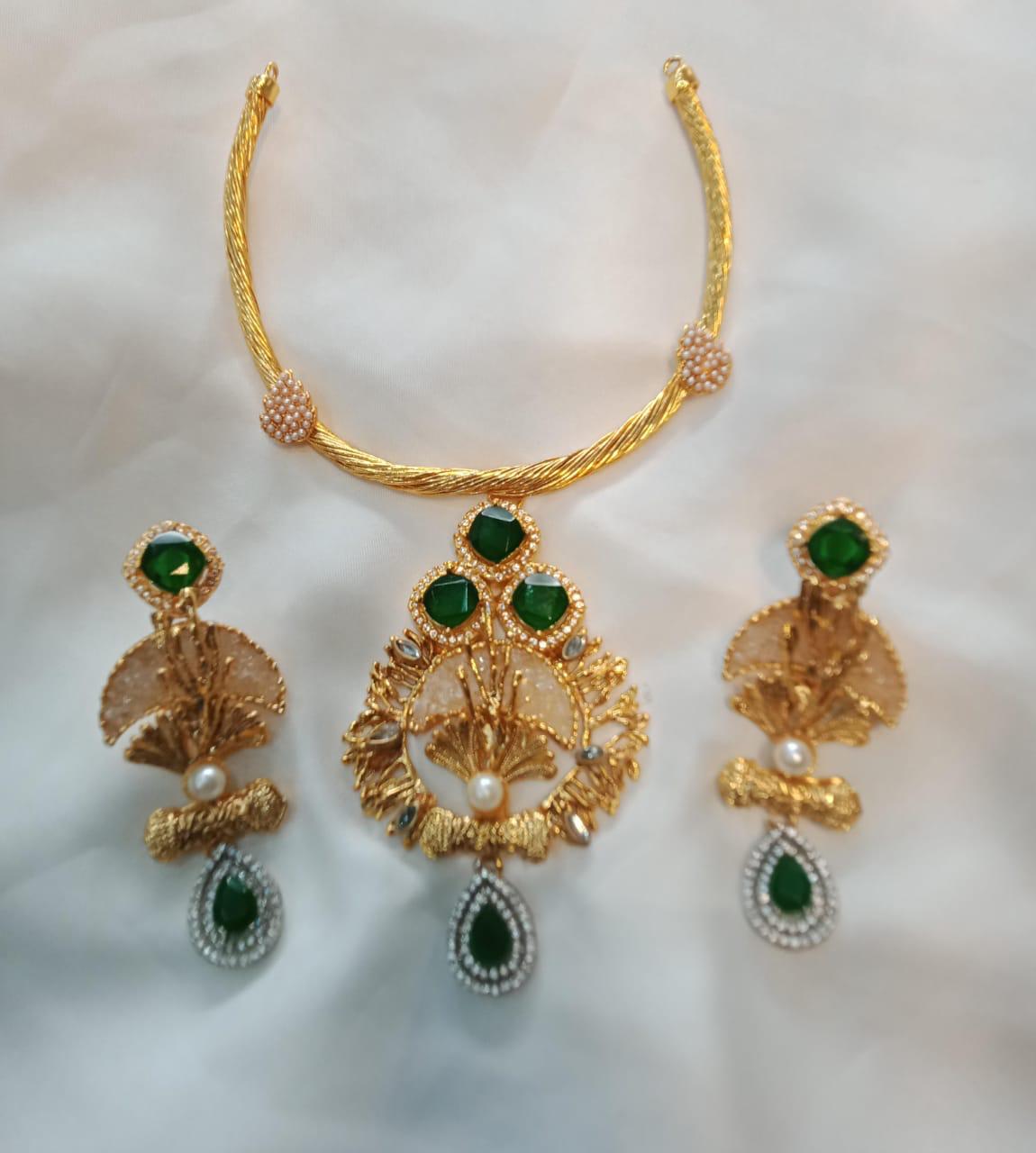 This handcrafted designer jewelry set features an exquisite necklace and matching earrings, meticulously crafted from high-quality materials.